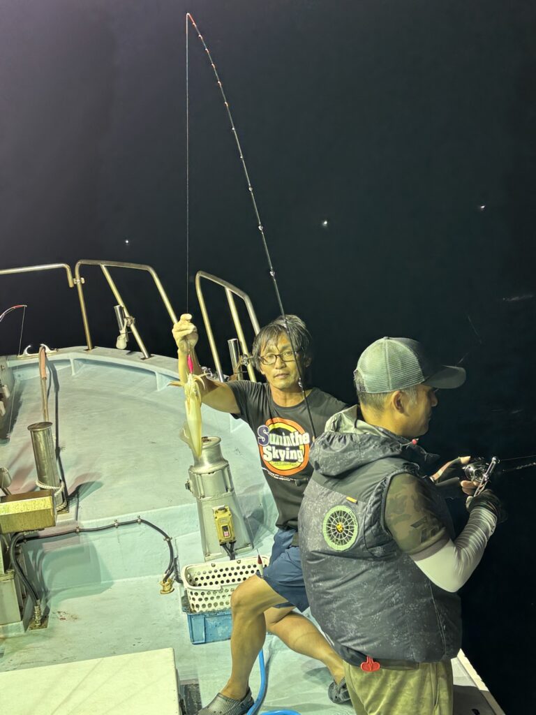 8/15(金) マイカ半夜便 2025年8月19日 syuneimaru 潮緩めでしたが、パラシュート投入‼️ イカパンチスタートから20時ぐらいまでいー感じに上がっていましたが、ビタ止まり(>_<) その後は活性悪く、ラストまでポツン・・・ポツンの我慢の釣りでした。。。(T_T) 皆さんお疲れ様でしたm(_ _)m