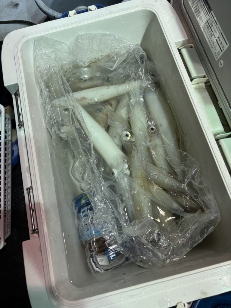 8/24(日)、25(月) マイカ低活性でしたね(>_<) 2025年8月26日 syuneimaru 両日ともに渋めで毎日…好釣とはいきませんね(T_T) マダイの邪魔が入り、マイカバクバクやられてましたよ‼️ それでも、地元名人はさすがねすねー 40杯はあっぱれですわ(^_−)−☆ 皆さんお疲れ様でした。 冷海水締め‼️ てっぺん40…お見事‼️
