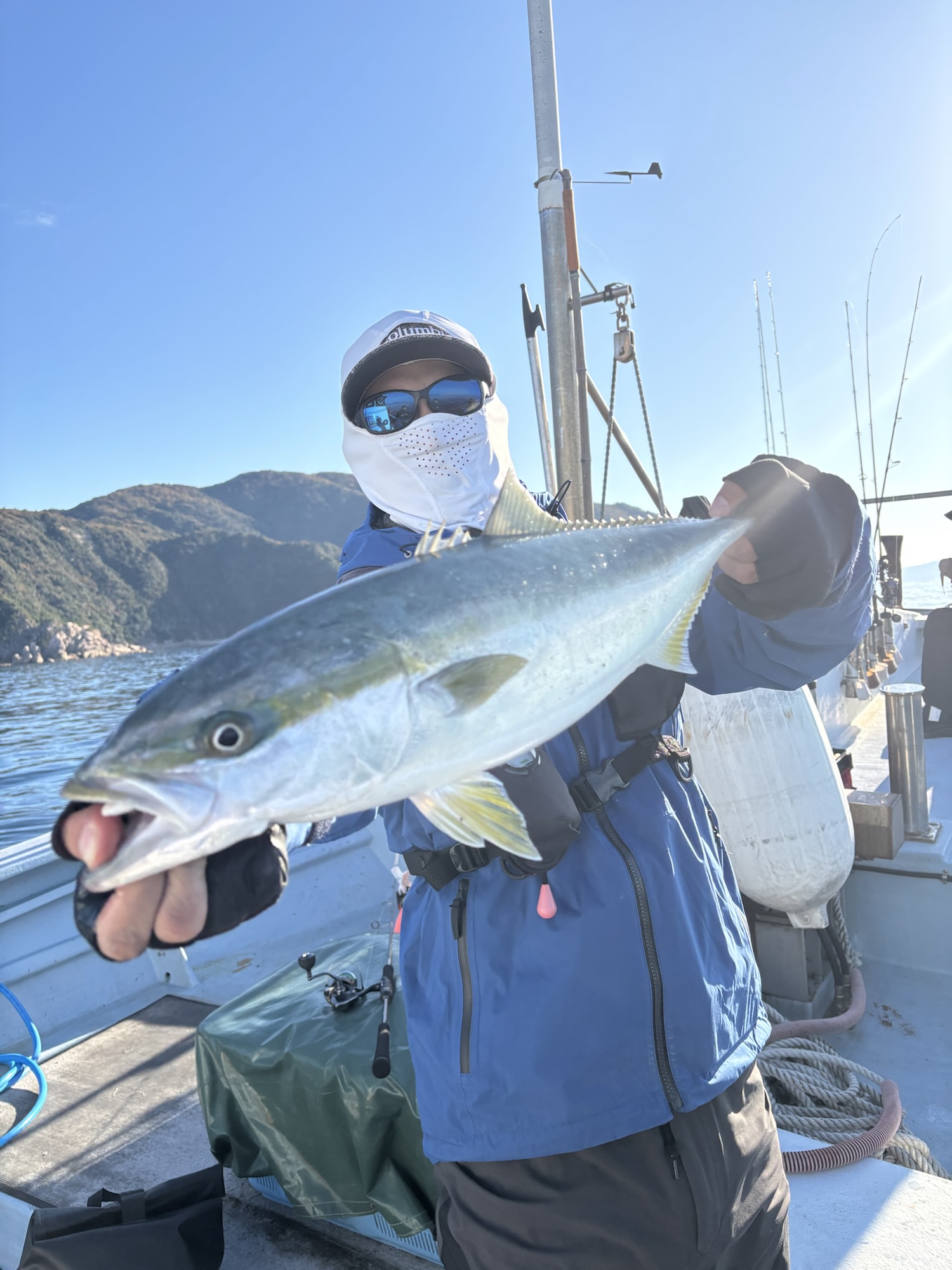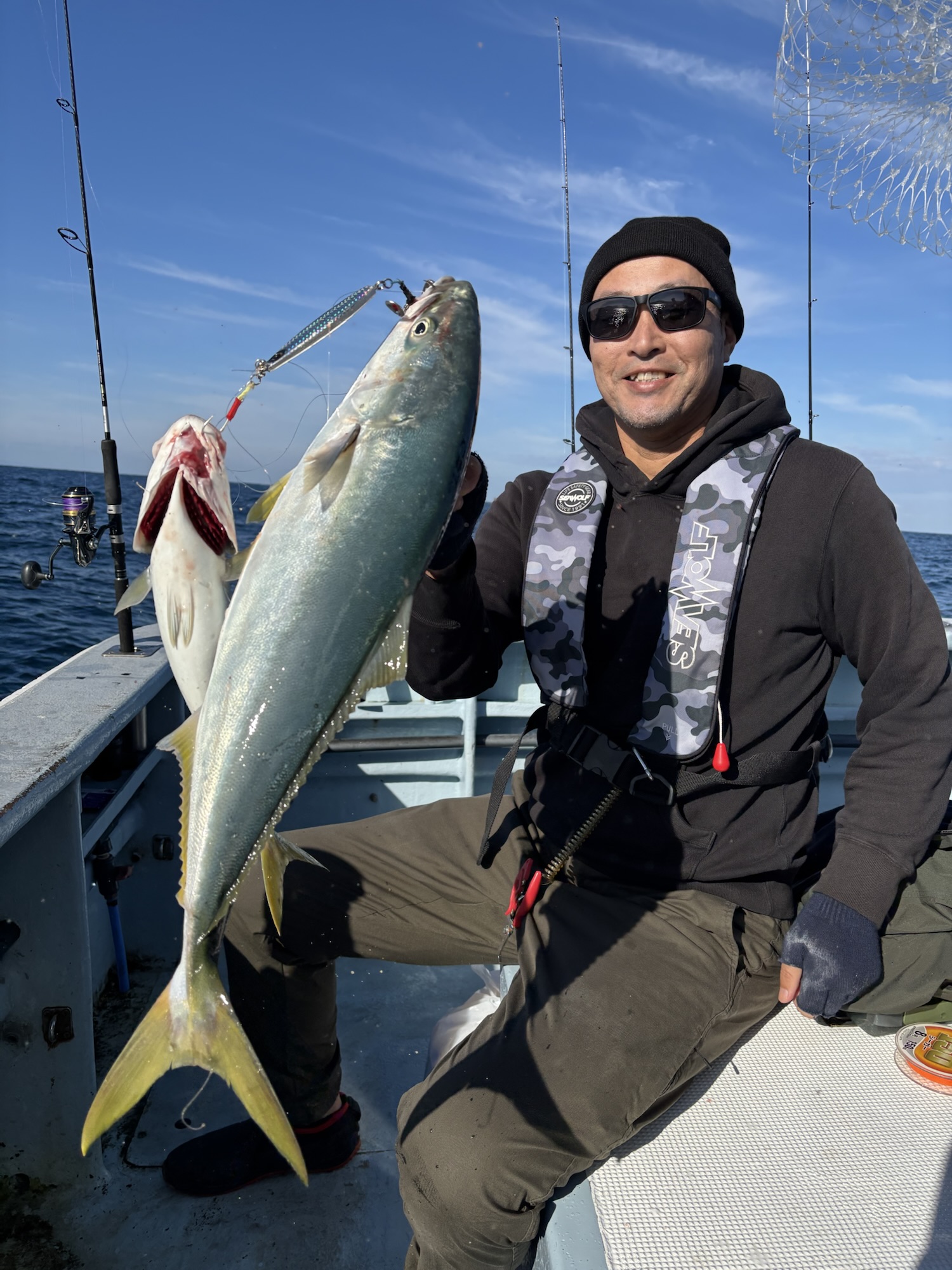 本日、ジギング便‼️ 鰤狙いで遠征だぁー‼️ 朝一に寒鰤ダブルヒットで二本ともキャッチでしたよ\(^o^)/ 大きいので11.3Kgコンコロコンでしたわ 寒鰤狙い&