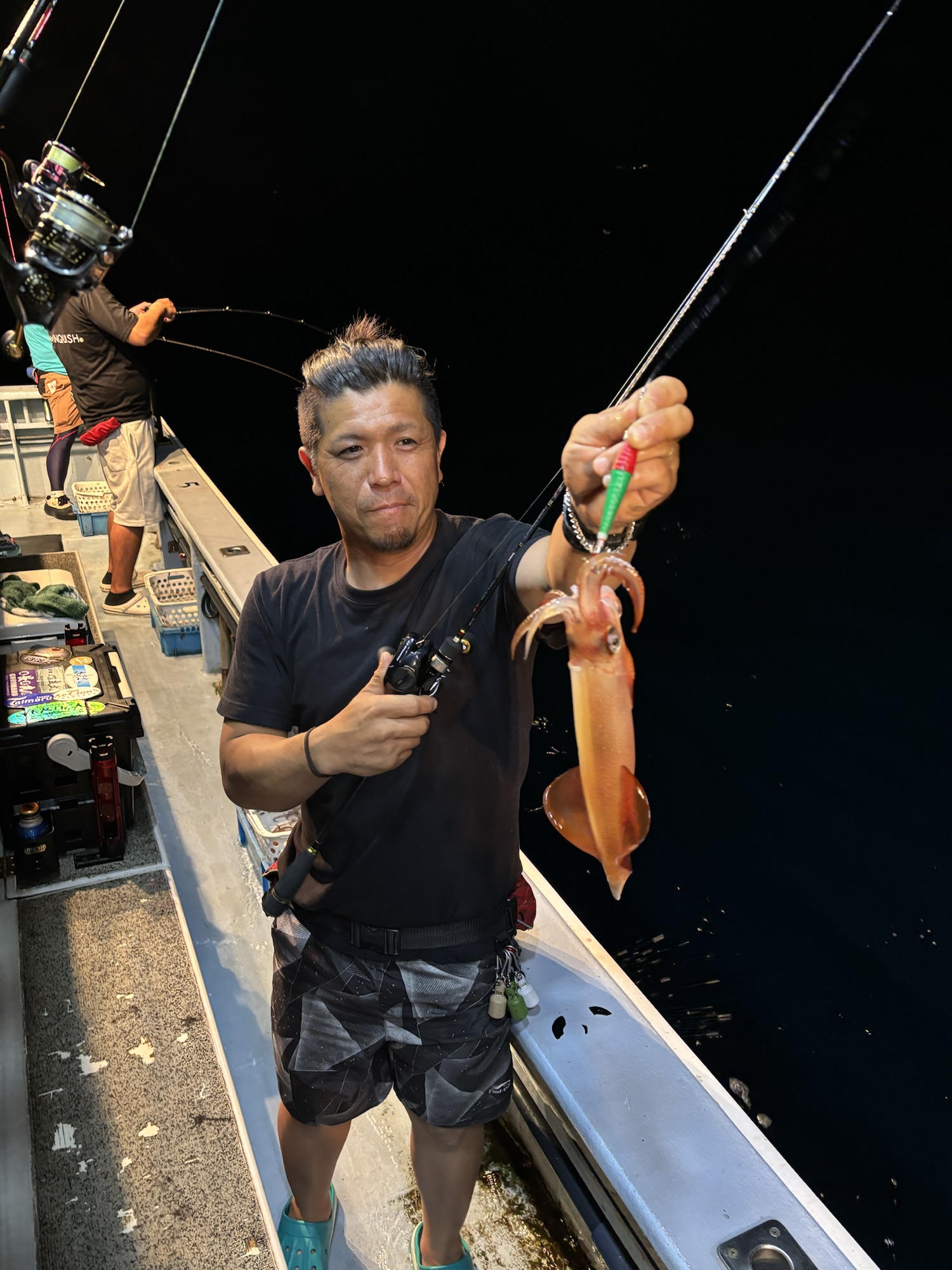 潮が緩いポイントで錨ドボン‼️ 新月周りがよかったのか、、、早い時間帯からイカパンチスタートだぁー‼️ ラッシュとはいきませんが、ノリノリのお客さんおられましたよo