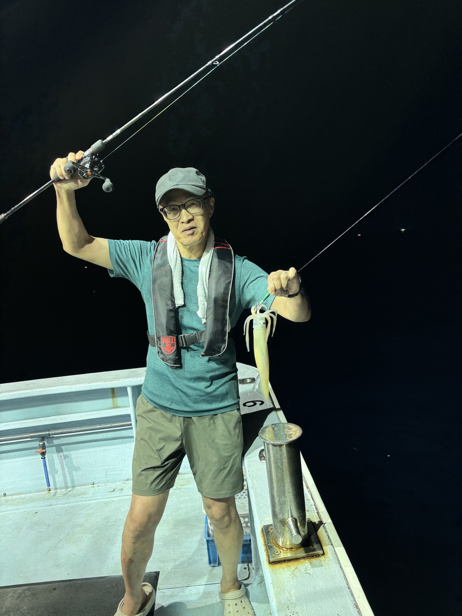 二日シケ後の出船‼️ 潮のあんばいが変わり、右往左往で三度目の正直でポイント落ち着きました…(>_<)笑 残り時間も少なくなりでしたが、ぼちぼちとイカパンチ‼